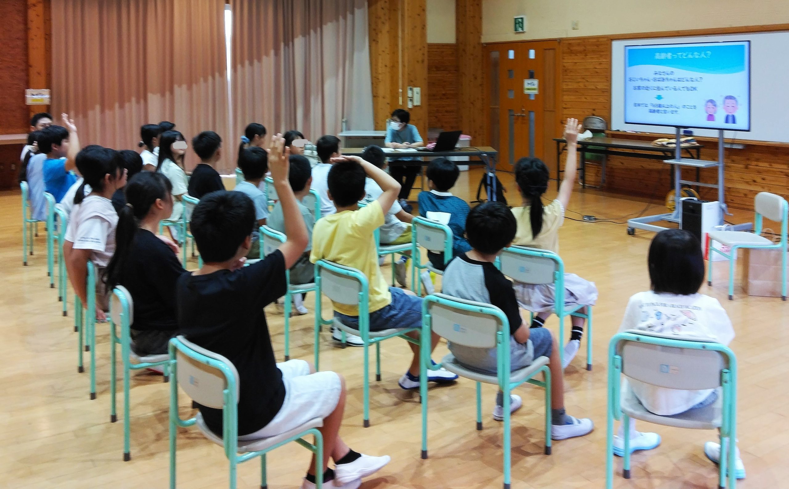生駒市メディカル南地域包括支援センターと生駒市梅寿荘地域包括支援センターは、共同で8月27日(水)に「認知症キッズサポーター養成講座」を生駒南第二小学校5年生の児童を対象に開催しました。1クラス25名の児童の皆さんは、認知症とは何か、脳の仕組みや認知症の人への接し方、自分たちにできることは何かなど40分の授業を熱心に受けてくれました。