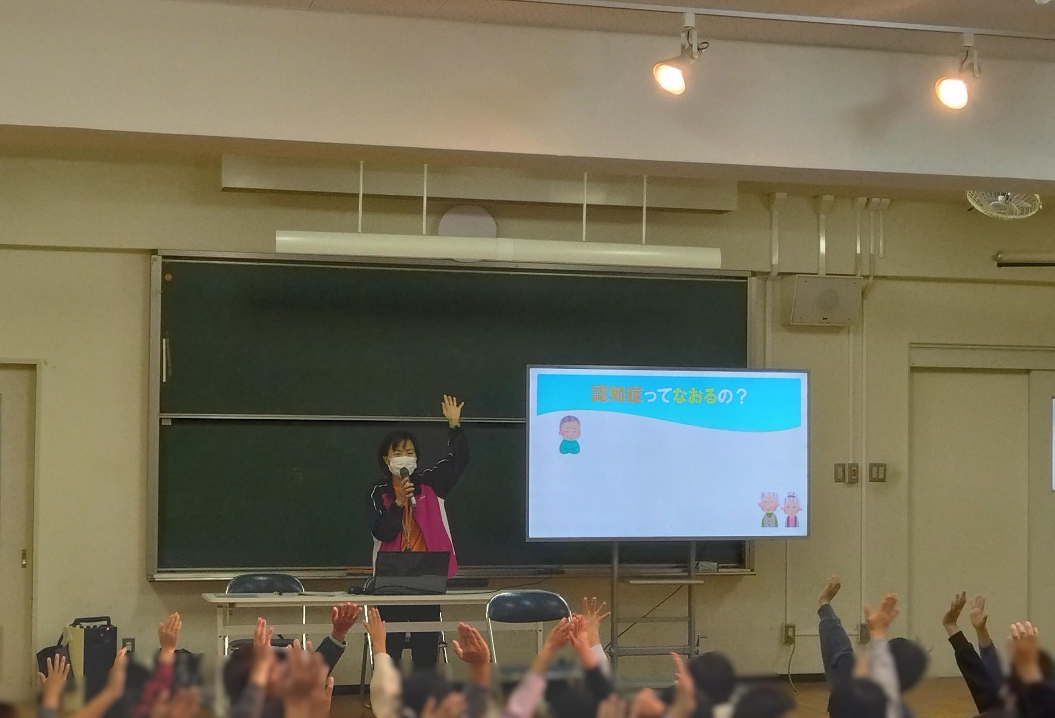 生駒市メディカル北地域包括支援センターは、11月17日(月)に「認知症キッズサポーター養成講座」を真弓小学校4年生の児童112名を対象に、全クラス合同で開催しました。