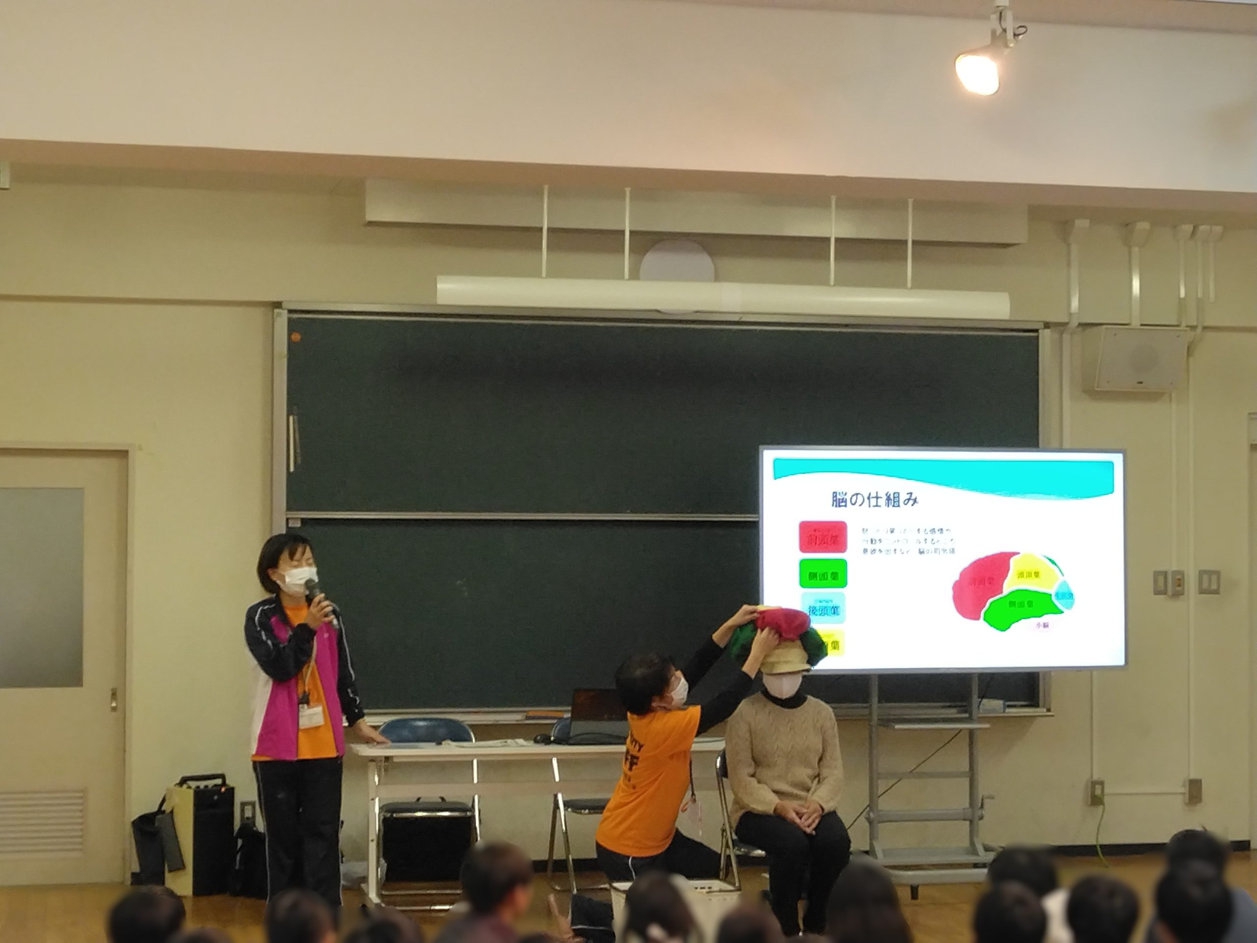 児童の皆さんには、認知症とは何か、脳の仕組み、認知症の人への接し方を寸劇を交えて行い、自分たちにできることなどを学んでもらいました。